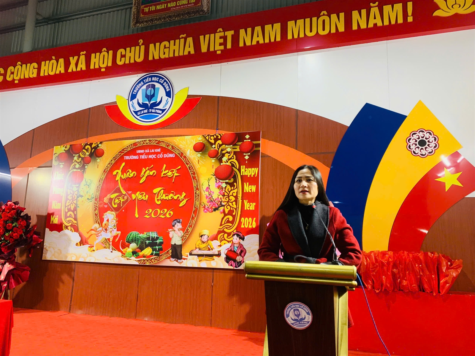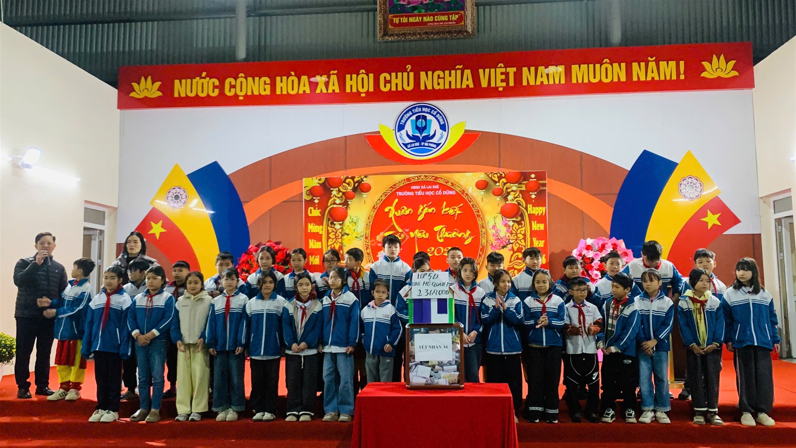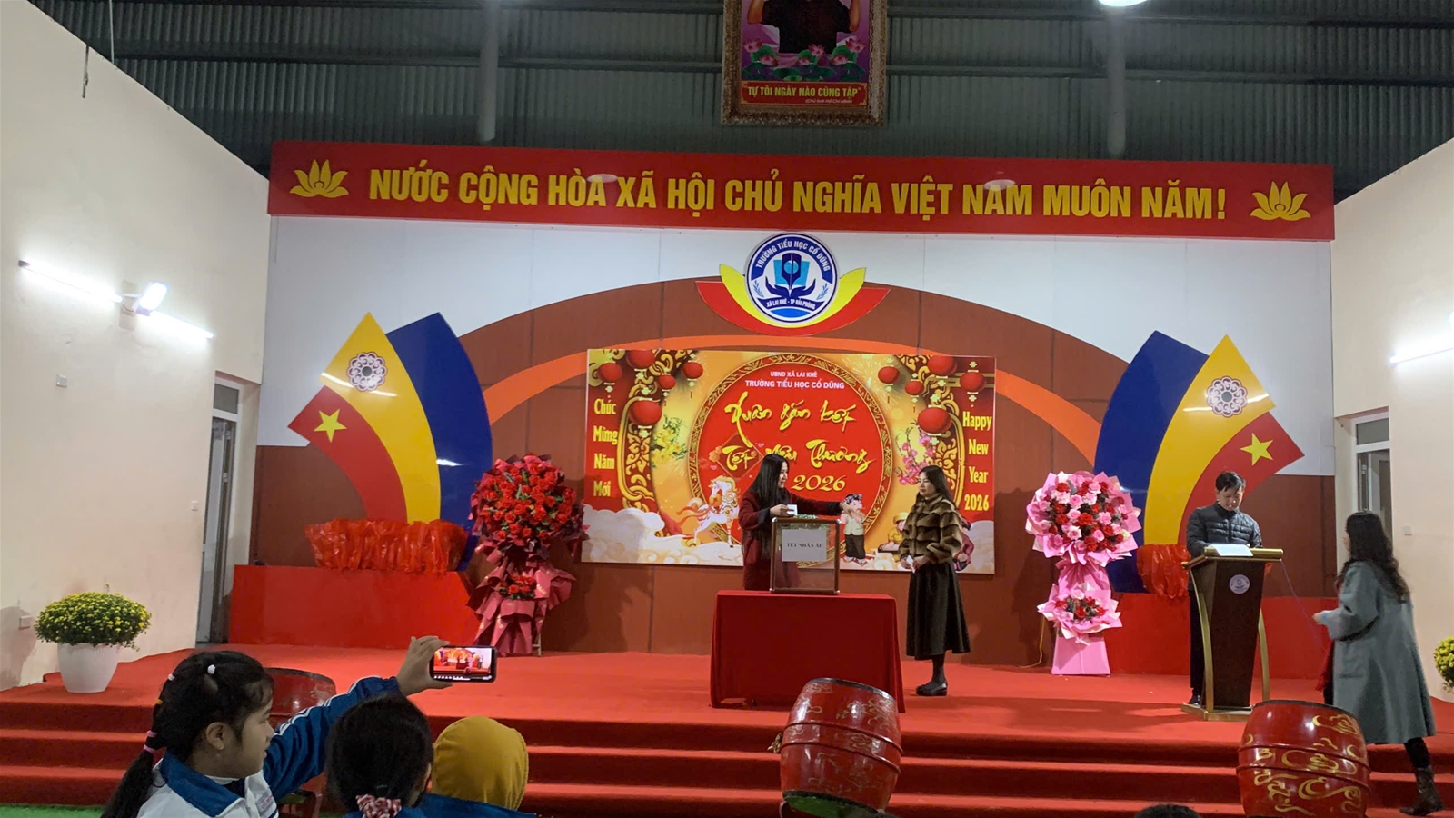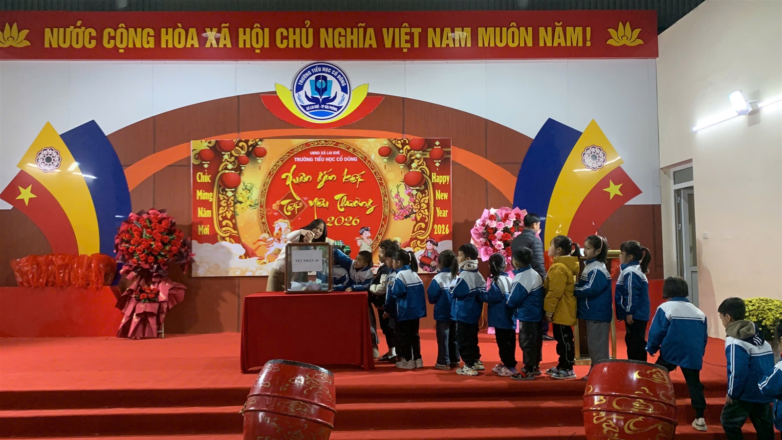 Nhằm phát huy truyền thống “tương thân tương ái”, “lá lành đùm lá rách” của dân tộc Việt Nam, đồng thời giúp các em học sinh có hoàn cảnh khó khăn được đón Tết Nguyên đán trong không khí ấm áp, yêu thương. Sáng ngày 09/02/2026, Trường Tiểu học Cổ Dũng đã tổ chức chương trình “ Xuân gắn kết-Tết Yêu Thương”. Về dự chương trình Tết yêu thương” có cô giáo Lê Thị Mai Lan– Bí thư chi bộ, Hiệu trưởng nhà trường, cô giáo Vũ Thị Nữ – Phó bí thư chi bộ, Phó hiệu trường nhà trường cùng toàn thể giáo viên, nhân viên và 589 em học sinh từ khối 1 đến khối 5. Mở đầu chương trình là những tiết mục văn nghệ vô cùng đặc sắc của các bạn trong đội văn nghệ nhà trường.